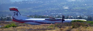 tarmac de l'aéroport de Pierrefonds d'un Dash 8 de la Sécurité Civile basé à Marignane. Arrivé mercredi soir 11 octobre, le Milan 74 F-ZBMD, déjà venu en 2014 ...