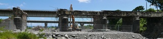 ![]() Radier du Ouaki, l'ancienne chaussée fait de la résistance 13 mars 2018 - Bras de Cilaos - Alors que les crues occasionnées par le passage du cyclone Dumazile ont emporté le radier du Ouaki, submergeant sous un flot de galets les deux trains de buses, sur l'ilot central, quelques dizaines de mètres de l'ancienne chaussée ont encore échappé à l'érosion, perchés dangereusement à plus de trois mètres au-dessus du niveau actuel du lit de la rivière ..
