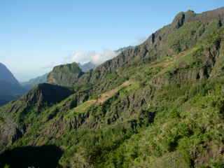atteignez une plate-forme : Mafate est à vos pieds, au delà de Marla, le plateau de La Nouvelle, le piton des Calumets ... | |