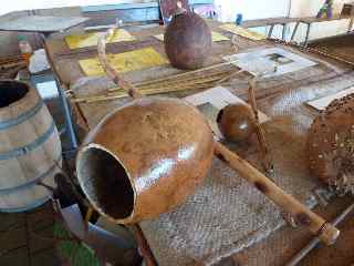 <<< Les calebasses sont utilisées en caisse de résonnance pour les bobres .... Voir un arbre à calebasses dans le jardin de la Maison de Villèle Un arbre à calebasses |