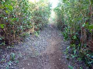 >>> La voie devient très vite sentier, entre deux haies de goyaviers, hélas sans fruits à cette époque de l'année ... |