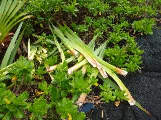 ![]() Coquillages accrochés à la lave et détritus abandonnés retenus par les fissures, feuilles de vacoa au sol ...