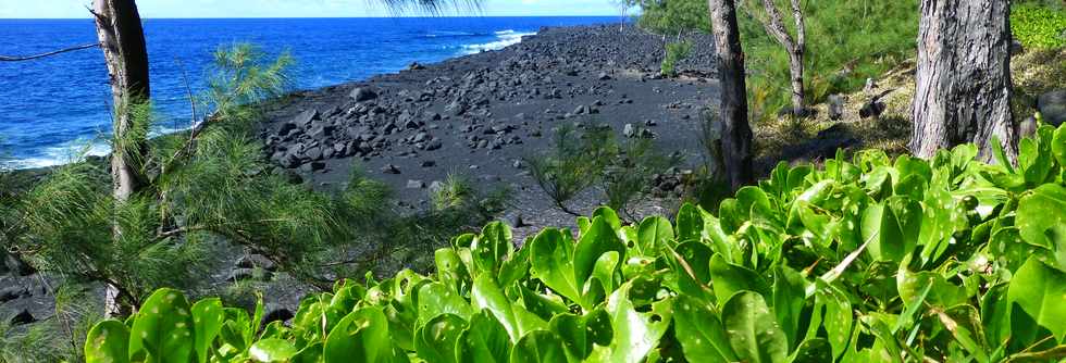 ![]() Les filaos et les vacoas ont été épargnés entre les deux bras de la coulée ...