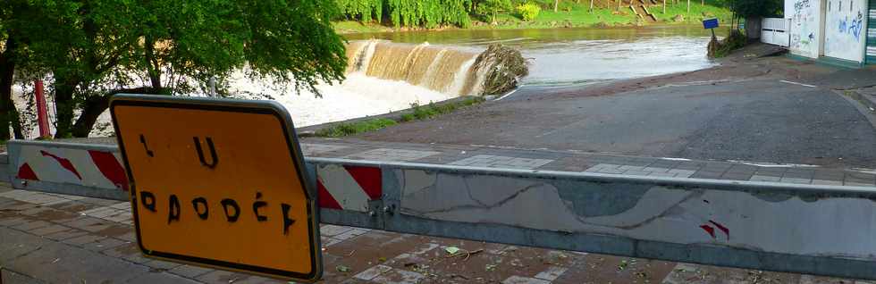 ![]() ... et les dernières bornes bétonnées du radier qui ont échappé à la violence du courant retiennent la végétation déracinée en amont ...