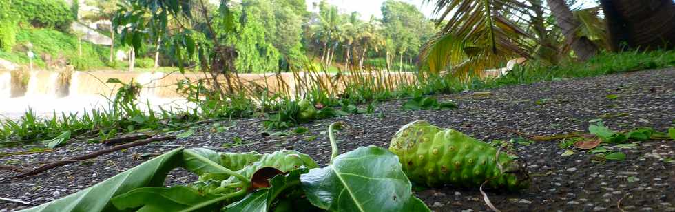 ![]() Sur le sentier vers les banians, les pieds de noni ont perdu leurs fruits ...