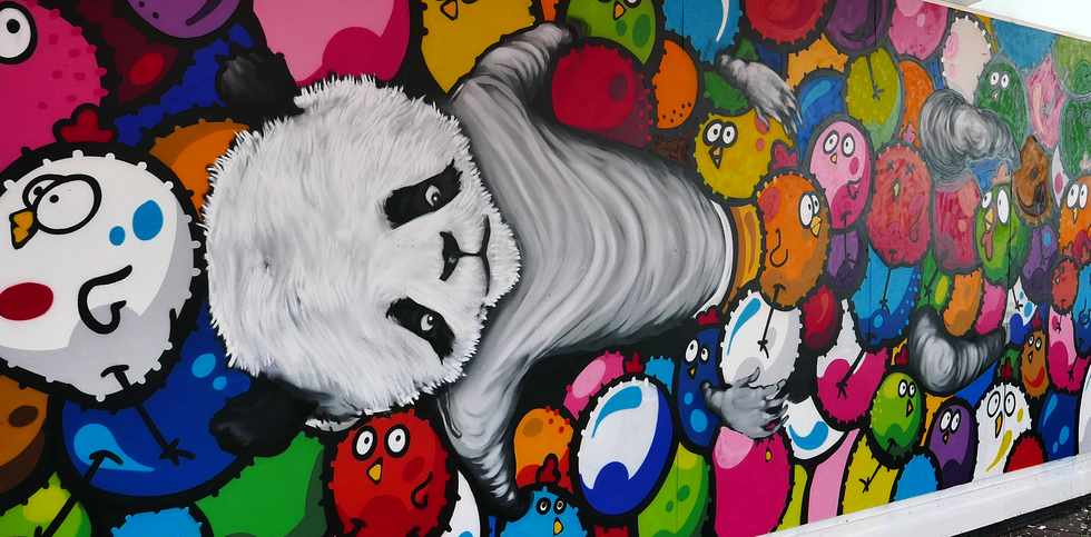 ![]() ... ont créé, dans la chaleur moite de l'après-midi de samedi dernier, une œuvre commune "SONA" - mêlant panda et poulets ...