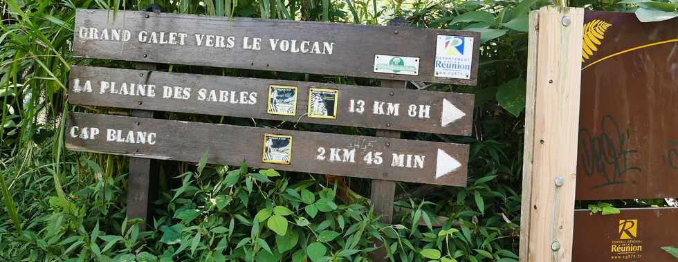 ![]() Le sentier qui mène au "Volcan" commence après le parking, à 300 m de la station de potabilisation de l'eau, à l'altitude de 600 m ...