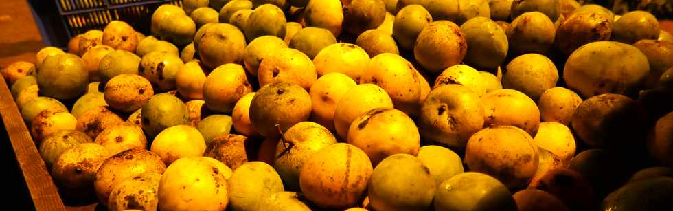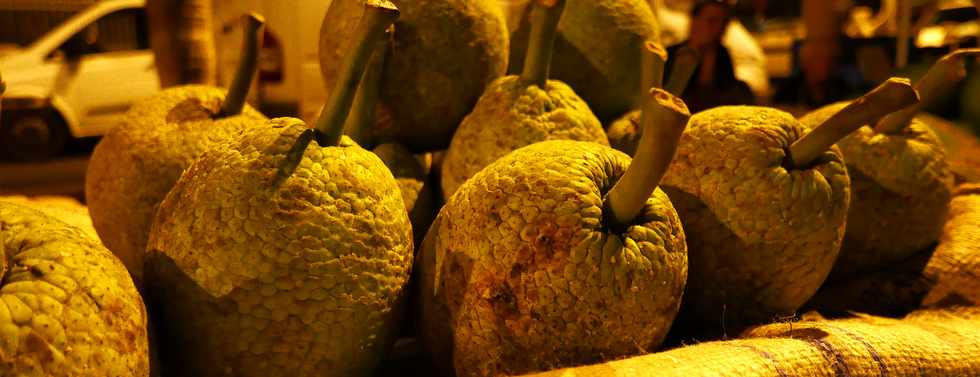 23 mars 2019 - 5h30 - Saint-Pierre - Boulevard Hubert-Delisle - En cette période de chaleur et sécheresse, les pitayas, rouges ou blancs, se retrouvent en abondance sur les karos du marché forain ...