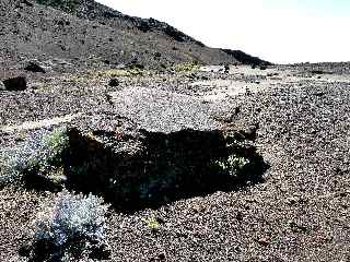 >>> Passé le col Alfred Lacroix, entre le Demi-Piton et le Piton Haüy, la Plaine des Sables se découvre, avec le Piton Chisny au loin. La moindre pente est propice au ruissellement des eaux de pluie .... |