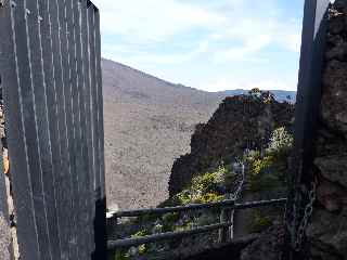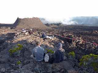![]() Le seul cône encore en activité est visible, à six cents mètres en contrebas, mais les coulées sont masquées ... | |