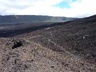 ![]() Avant de monter au Cratère Caubet, traversée d'un chenal de laves ... | |