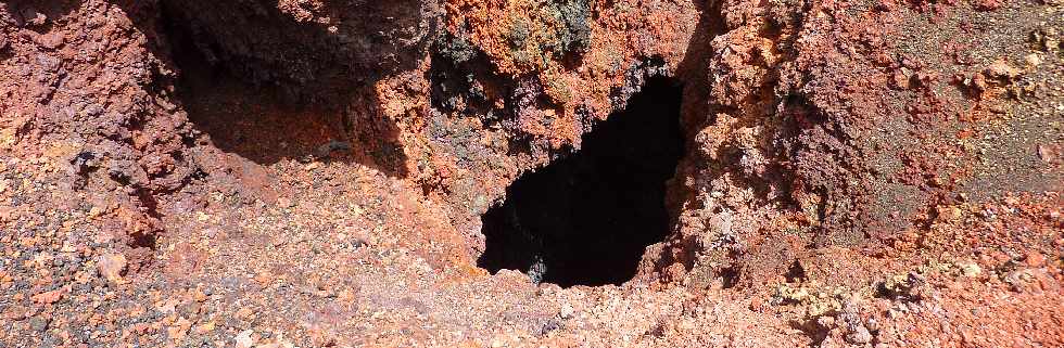 ![]() Au pied, on devine un ancien chenal - tunnel de lave dont il ne reste plus d'un bout d'arche, long de moins de deux mètres ... | |