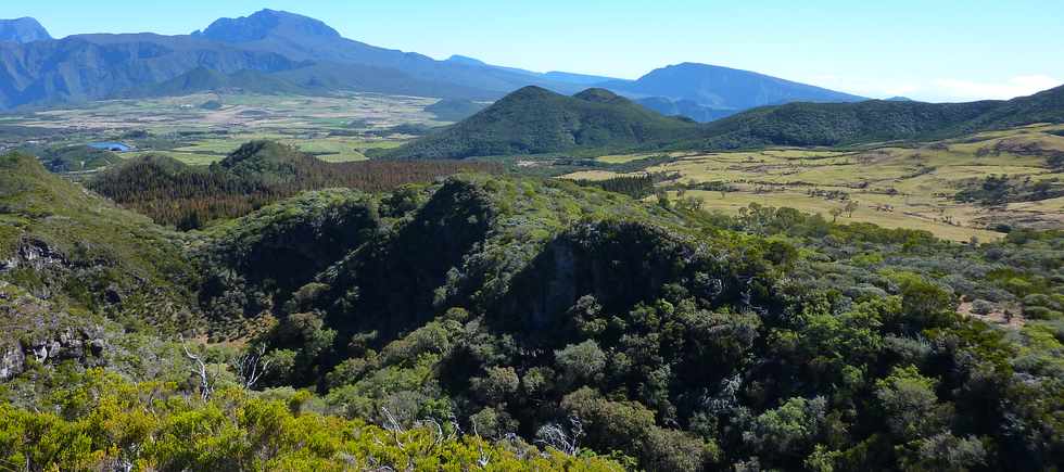 ![]() Du bord du cratère inférieur, vers le nord-ouest, Grand Bénare, Piton des Neiges et Roche Ecrite vous saluent ...