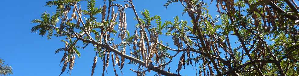 ![]() Les gousses du petit tamarin des Hauts - Sophora denudata Bory - restent sur l'arbre ...