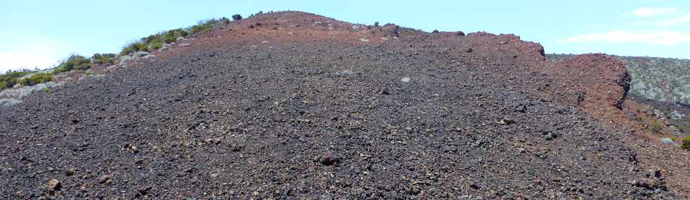 ![]() Le Piton Rouge (2 368 m) est un cratère ouvert vers le sud (à droite, le Piton de la Fournaise) ...