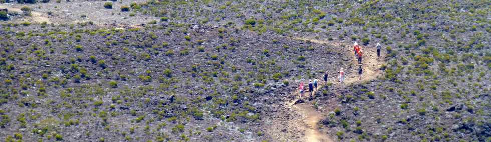 ![]() Au fur et à mesure de la remontée vers le Piton Rouge, le cratère Rivals commence à entamer sa révolution devant le Piton Kalla et Pélé ...