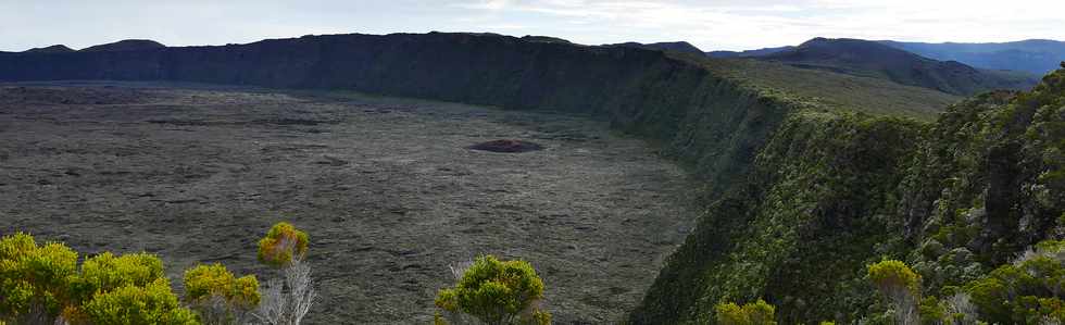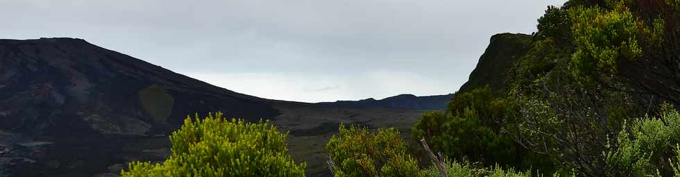 ![]() Au parking du Pas de Bellecombe, qui ne voit pas l'affluence des grands jours d'éruption, le fond de l'Enclos Fouqué se laisse découvrir ...