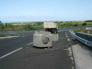 >>> Sur l'ancienne route nationale 1, le radier de la ravine des Cabris est renforcé par un mur en moellons, en aval, sage précaution avant la saison cyclonique ! |