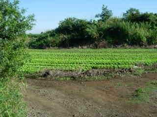 <<< Parfois, une parcelle en verger apparaît au milieu des cannes ... |