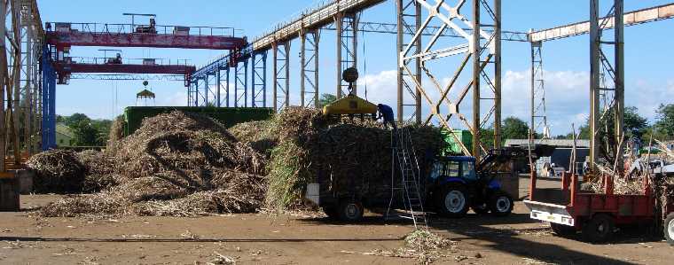 >>> St-Pierre, rond-point de la Balance : à la plate-forme de réception des cannes des Casernes de la Sucrière de la Réunion, pas de longue file d'attente aujourd'hui, le respect du planning des apports de cannes par les planteurs, certainement ... |