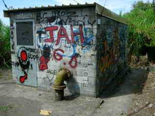 peu plus bas, les anciens réservoirs sont décorés ... |