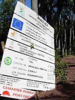 >>> Un panneau indique : ARMEFLHOR, construction d'une station expérimentale, un projet cofinancé par l'Union européenne, le Ministère de l'agriculture et le Département de la Réunion. L'ARMEFLHOR est l'Association réunionnaise pour la modernisation de l'économie fruitière, légumière et horticole, elle s'est installée en janvier 2008 à Bassin Martin. Le