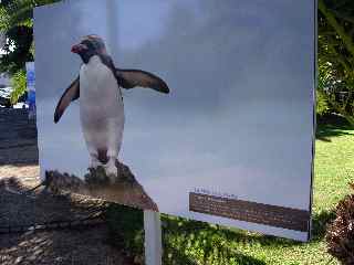 <<< Jardins de la Plage - Les panneaux qui étaient encore recouverts d'un papier blanc tôt samedi dernier présentent maintenant de superbes photographies de plusieurs variétés d'albatros (tête grise, sourcils noirs ...), de manchots royaux, de gorfous macaroni .... |