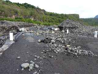 ![]() Entre les deux radiers, le bitume a été soulevé et présente un aspect lunaire, avec pics et cratères ... | |