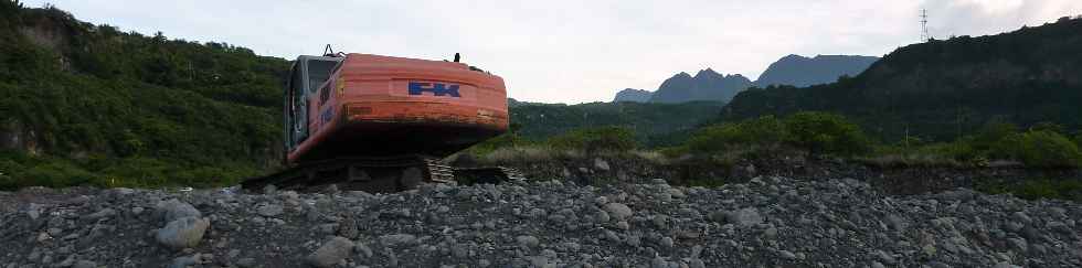 ![]() Toute la partie à droite du radier a été comblée et l'eau du Bras de Cilaos canalisée vers le radier .... Voir avant | |