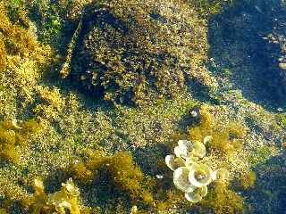 de la partie habituellement recouverte, la marque est nette, ce sont algues vertes, coquilles ....