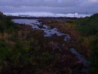 <<< L'embouchure de la Ravine Blanche, à sec d'habitude, est envahie par l'eau de mer qui a sauté le cordon littoral ... Dossier Météo |