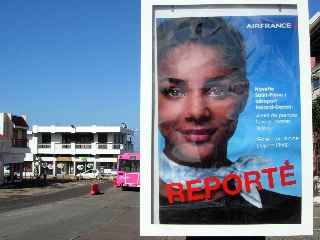 <<< Rue Luc-Lorion, devant l'agence, la publicité pour la mise en place de la navette Air France présente toujours son bandeau rouge "reporté" - Saint-Pierre/Aéroport Roland-Garros : avant de prendre l'avion, prenez le bus. Gare interurbaine - Départ 18 heures .... "delayed" ne veut pas dire "cancelled" ... 1er juillet 2011 - Rue Luc Lorion - Rappel - Vous ne verrez pas encore la navette Air France partir directement pour Gillot, les 28 chauffeurs de taxis de l'aéroport ayant réussi à convaincre le Conseil général et la Chambre de commerce d'annuler leur autorisation, après manifestation et opération escargot pour garder leur monopole ... |