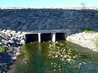 Les eaux du bras central n'ont pas de mal à s'écouler dans les buses carrées du radier ... |