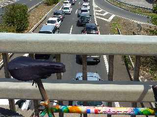 ![]() Du pont amont, la file de véhicules en direction de Saint-Pierre se remarque déjà ... | |