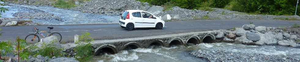 <<< La baisse du niveau de l'eau montre qu'un îlot de galets s'est créé au milieu du chenal en amont des buses ... Le Bras de Cilaos et le radier du Ouaki Revoir la veille |