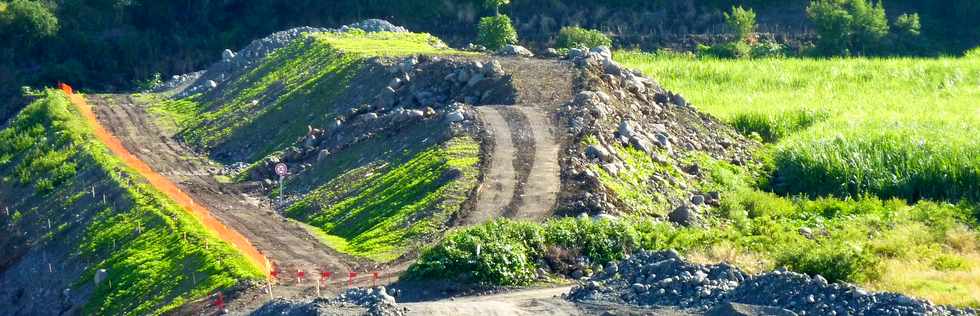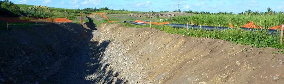 Le gigantesque chantier de l'interconnexion des périmètres irrigués du Bras de Cilaos et du Bras de la Plaine a commencé depuis le mois de février dernier - pose sur 6,6 km d'une canalisation en acier de 800 mm de diamètre... Chaque tuyau est numéroté (les numéros ne se suivent pas) et il porte la mention ORXY ELEVEN - X52-EN 10224 ...