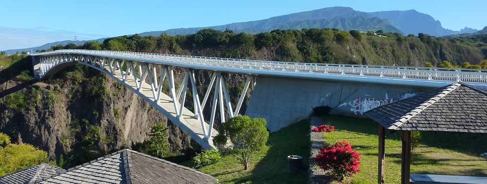 ![]() A une distance de 1 500 mètres, 130 mètres plus bas, apparaît l'ancien pont métallique, non loin du confluent avec le Bras de Cilaos ...