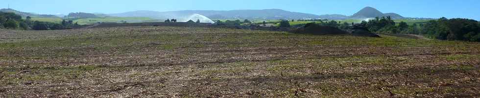 ![]() Chemin de Bassin Plat - Sur les parcelles replantées, les premières feuilles vertes des futures cannes sortent ...