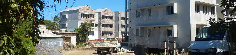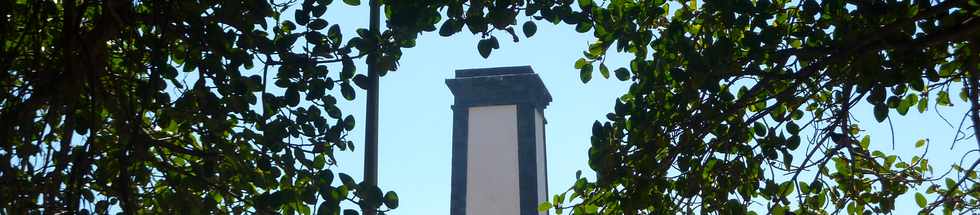Propriété du Comte Choppy, vendue à Monsieur Lougnier Lagane, achetée par la société Maurice-Réunion, revendue en 1923 à la Société anonyme de Grands-Bois, qui fusionnera en décembre 1948 avec trois autres sociétés pour devenir Sucreries de Bourbon ... L'usine va fermer en 1991, en attendant une renaissance. Seuls subsistent quelques pans de murs, de cette cathédrale industrielle, tels des décors de cinéma, uniquement des façades, sans épaisseur, en trompe-l'œil ... Seule la cheminée, dont la lézarde verticale a été rebouchée bien visiblement, reste, unique vestige en trois dimensions, un phare visible de la route ... A sa base, une plaque attire le regard, celle posée le 11 novembre 2004, commémorant le 122è anniversaire de la fin de l'engagisme indien, tandis qu'au dessus du frontispice à l'allure de temple grec, l'inscription 1875 n'est simplement découverte que par le passant, ou le cycliste, entre les feuillages ... |