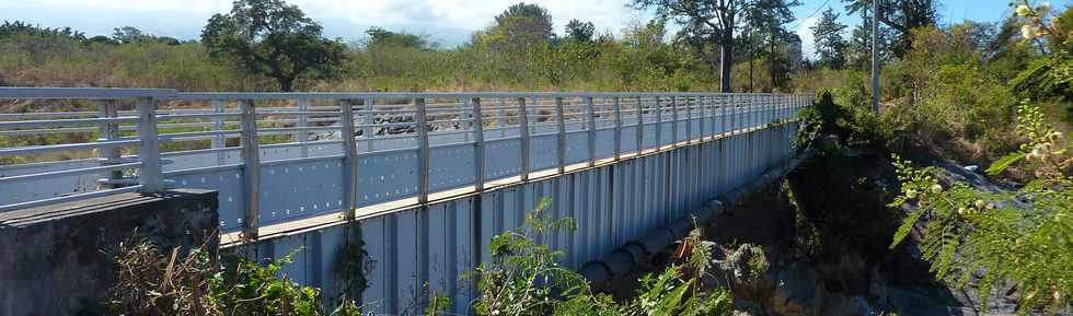 Le pont amont est en caisson précontraint à travées indépendantes, d'une longueur d'environ 520 mètres, construit en 1977 sur dix piles datant de 1937-1938, au mortier de chaux et sucre, un tablier n'ayant été jamais posé à cette époque, la colonie manquant d'argent ... Le 28 janvier 2013, un avis de marché a été publié dans la presse par la Région Réunion : Confortement