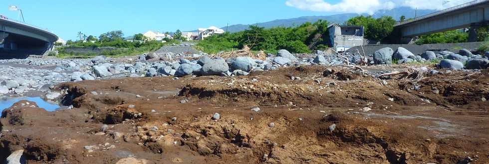 ![]() Entre les deux ponts, l'ancien radier, construit après le passage de Gamède, qui a été utilisé pour le sens Saint-Louis- Saint-Pierre de 2007 à 2013 ...
