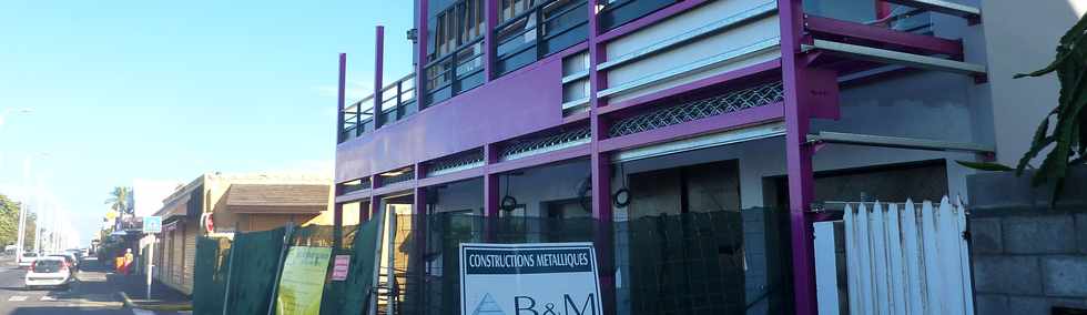 ![]() Plus bas vers la mer, le chantier de la nouvelle école de quatorze classes de Ravine Blanche, donnant sur la rue du Mahatma Gandhi ...