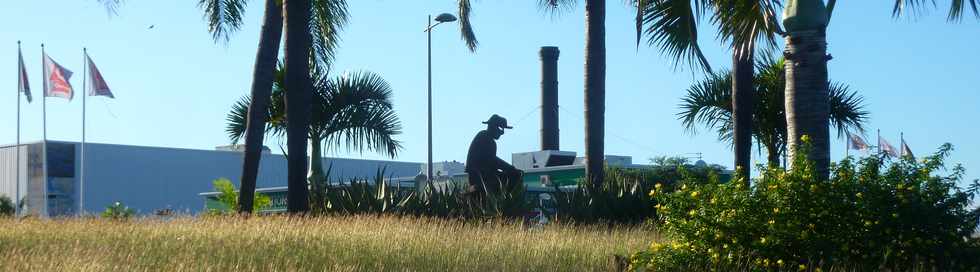 ![]() Dimanche 17 mai 2015 - Saint-Pierre - Troncs de palmiers et (fausse) cheminée, et dans le rond-point, l'agriculteur est bien seul depuis le vol de ses poules ...