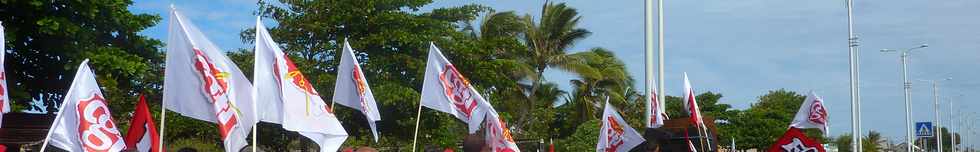 ![]() Boulevard Hubert-Delisle - Des drapeaux syndicaux flottent aux jardins de la plage ...