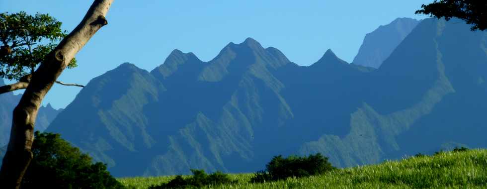 ... et les lignes de crête du Dimitile, qui ont gardé leurs profondes stries d'érosion d'avant l'effondrement d'un précédent Piton des Neiges ...