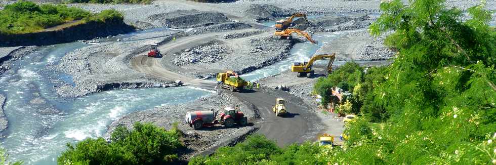 ![]() La Rivière Saint-Louis - Rive droite du Bras de Cilaos - La portion de chaussée fusible longeant le bas de la falaise, emportée lors de la crue liée aux pluies lors du passage du cyclone Dumazile, a été retracée ...