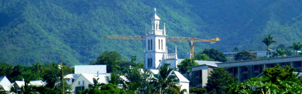 ![]() Le clocher de l'église de la Rivière Saint-Louis se détache sur le fond verdoyant de la chaîne du Bois de Nèfles ...