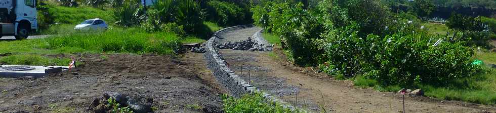 28 mars 2018 - Saint-Pierre - Pointe du Diable - Le chantier de l'aménagement du littoral ouest se poursuit, les travaux s'effectuant sur plusieurs fronts, au Cap Rond, avec un escalier monumental, à Saline Balance, avec la "roue de charrette", et ici, à la Pointe du Diable, avec la poursuite de la matérialisation de la voie piétonne et cycliste partant du Cap Tuf ...